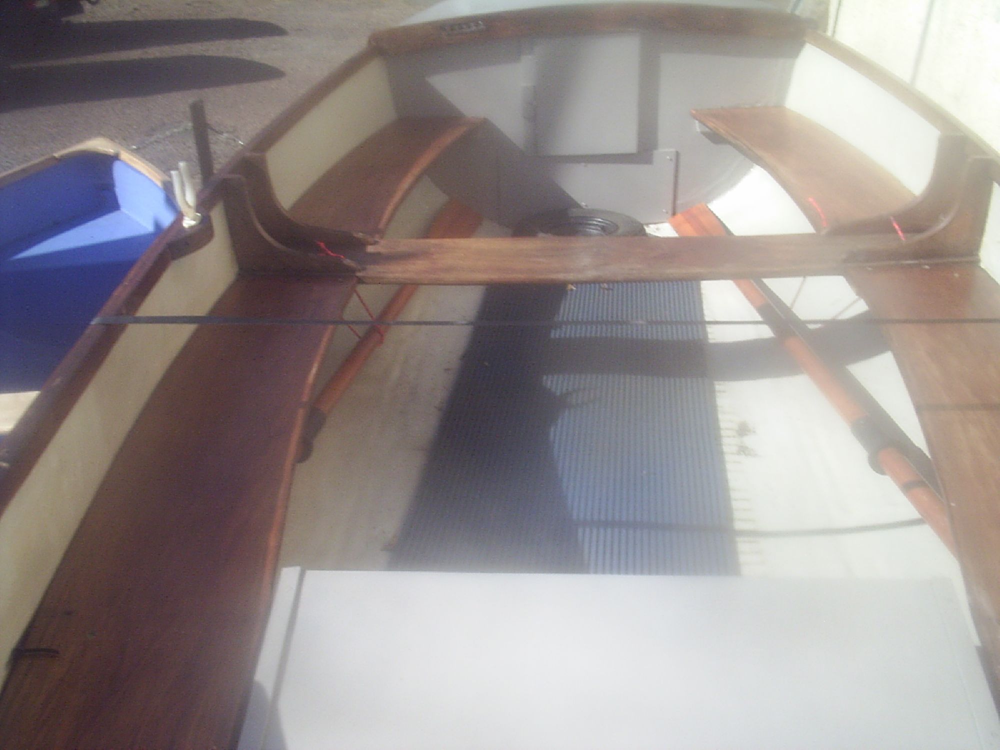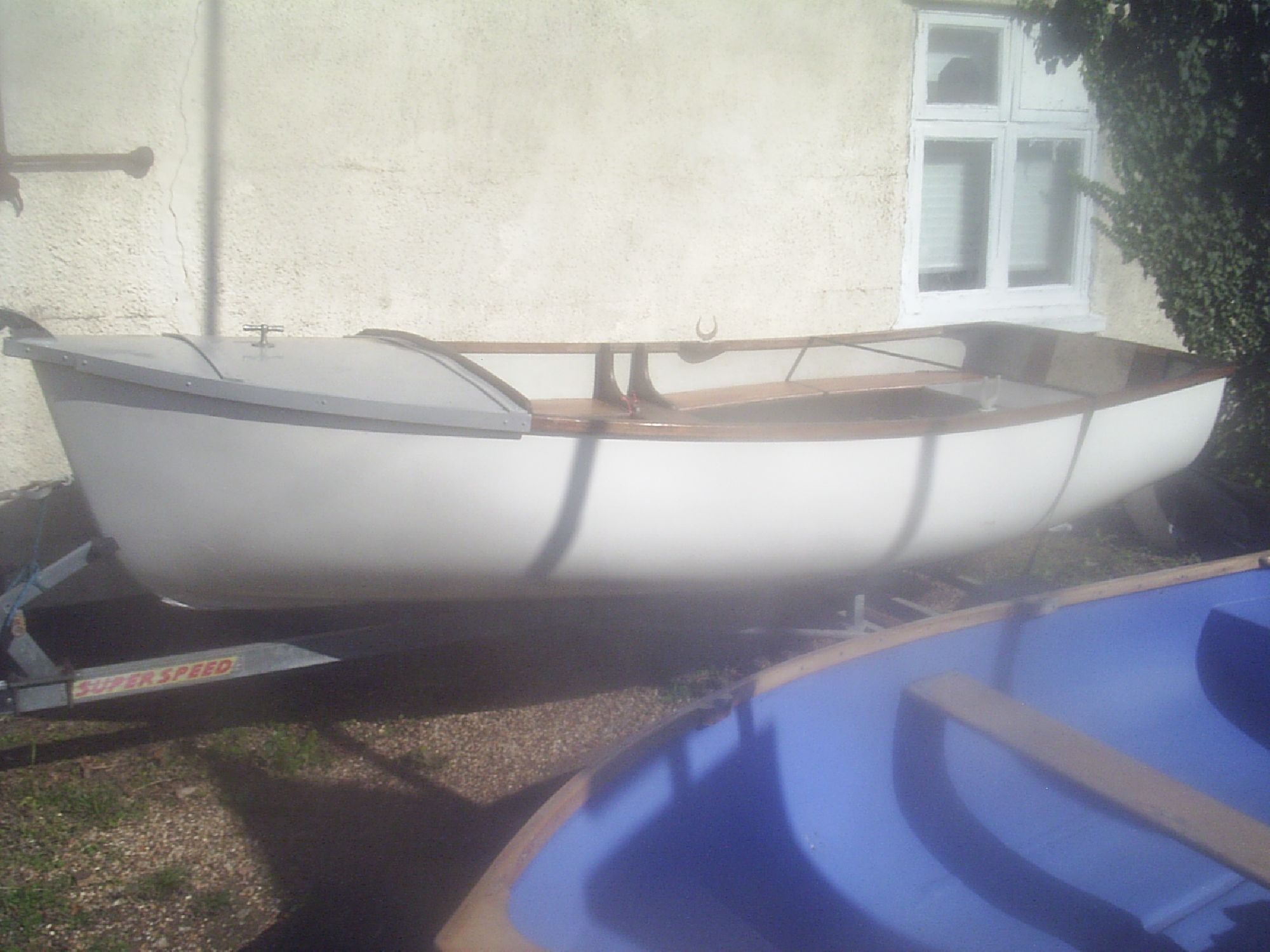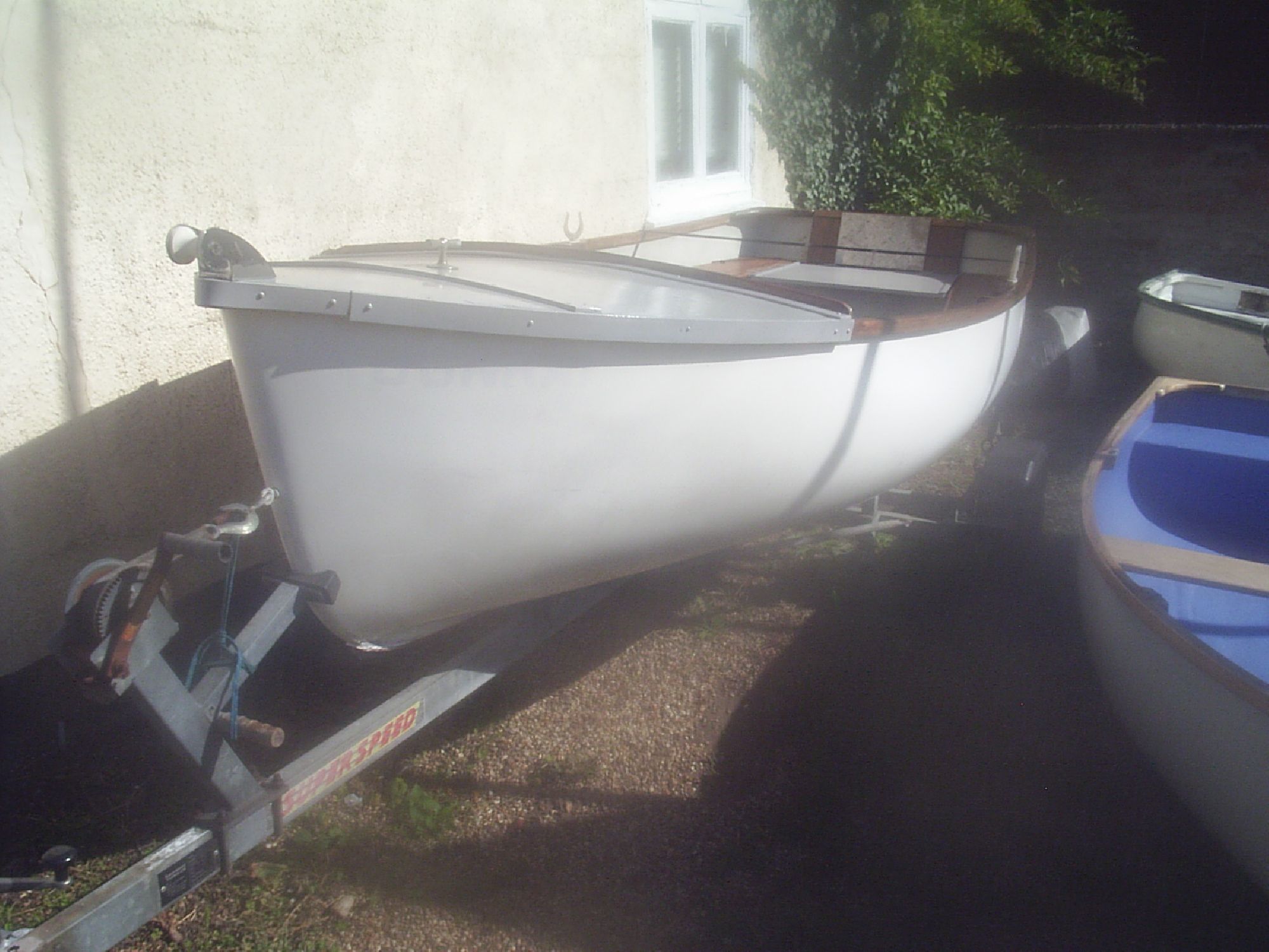 This boat has plenty of seating with bench seats port and starboard. She is quarter decked with a secure locker below. Solid pair of oars and a good custom built trailer. Overall good little stable boat.