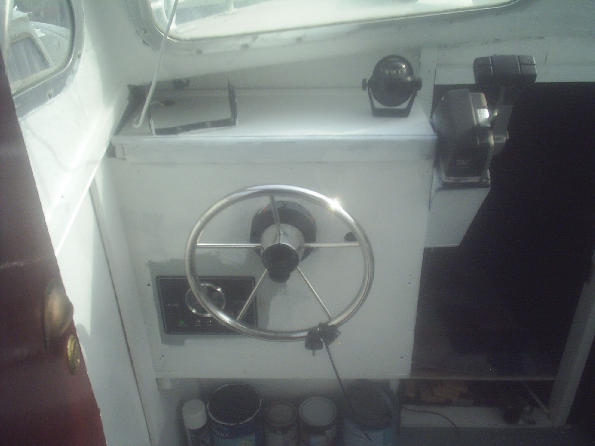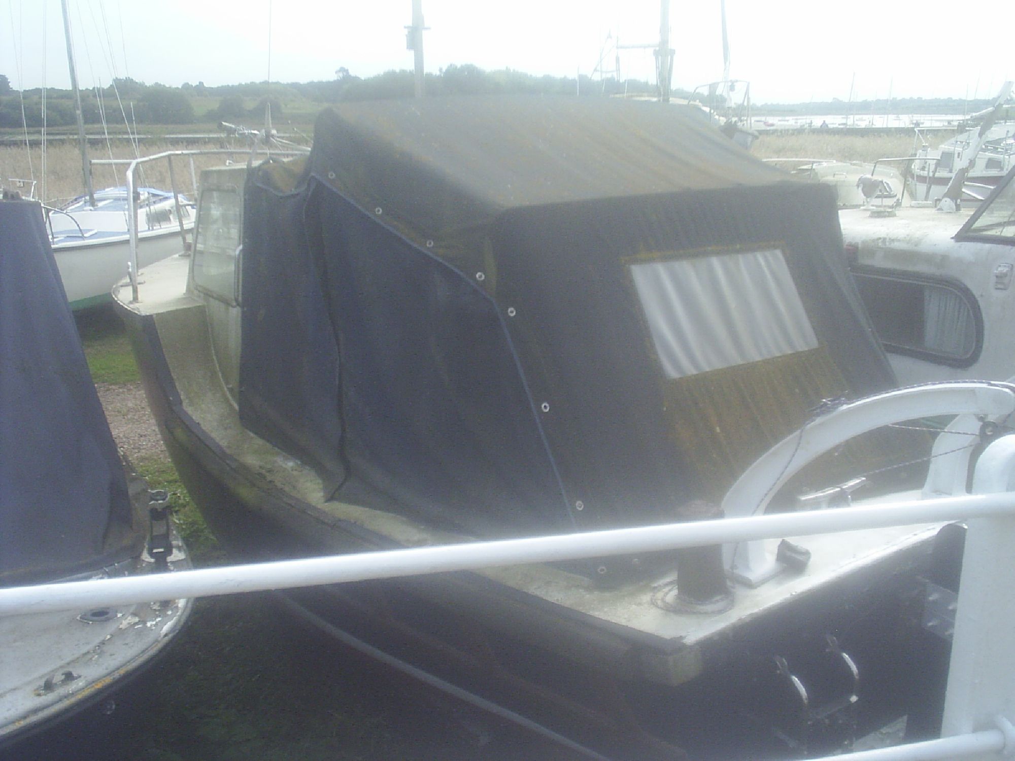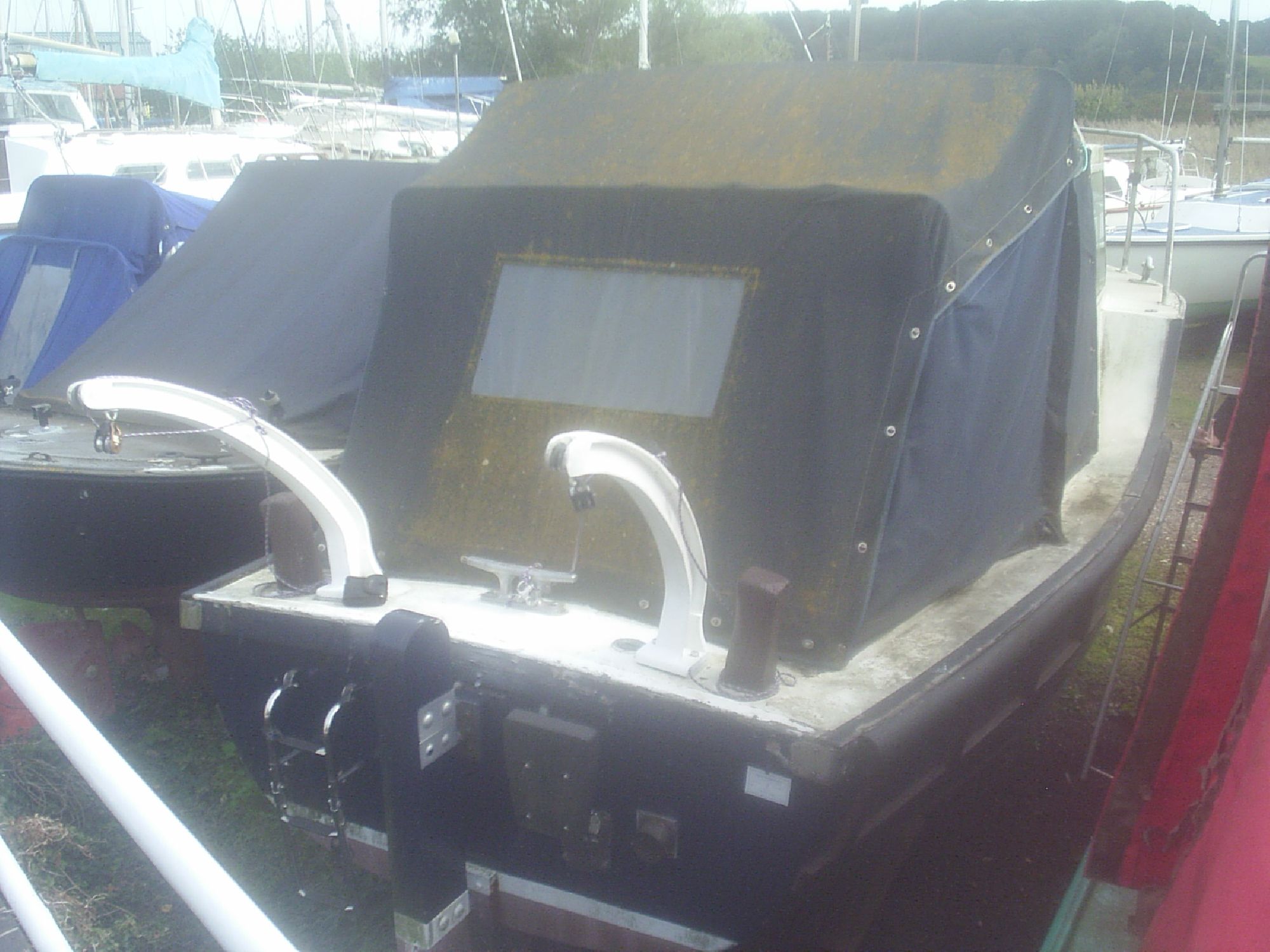 This Colvic comes with a cover/canopy on a frame work which covers the cockpit and a wheelhouse with helm and remote controls for the engine.There are a set of davits on the stern along with good strong cleets on the deck. She has some navigation gear including a compass and fishfinder. Also a boarding ladder on the transom. Overall this boat is quite well equipped and has had new steering cable and alternator on the engine.