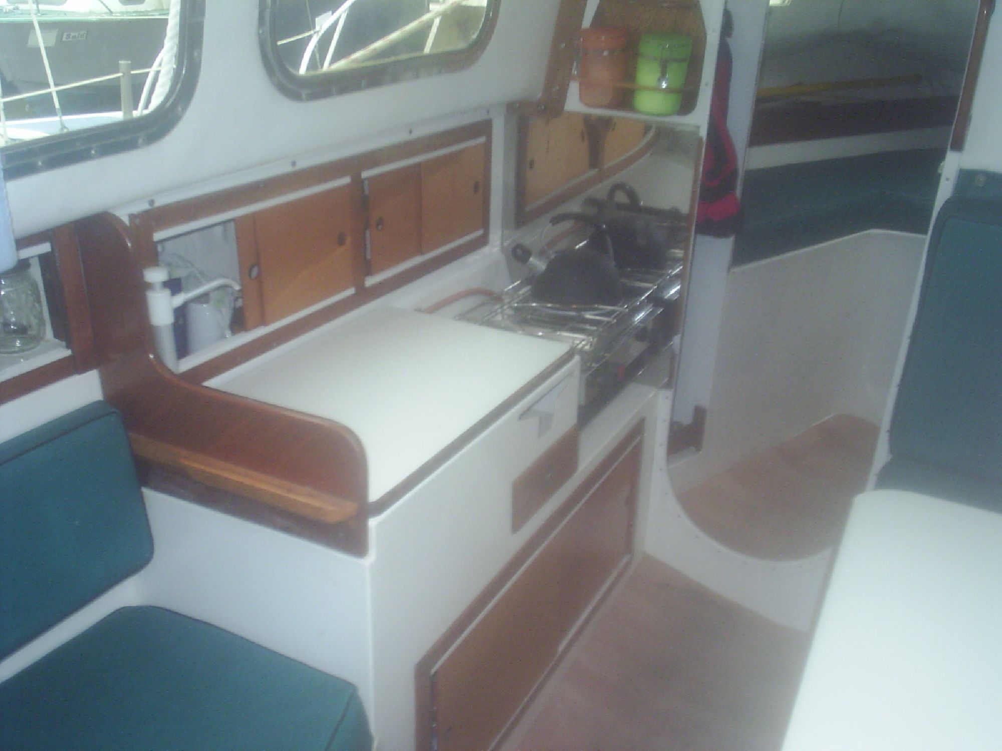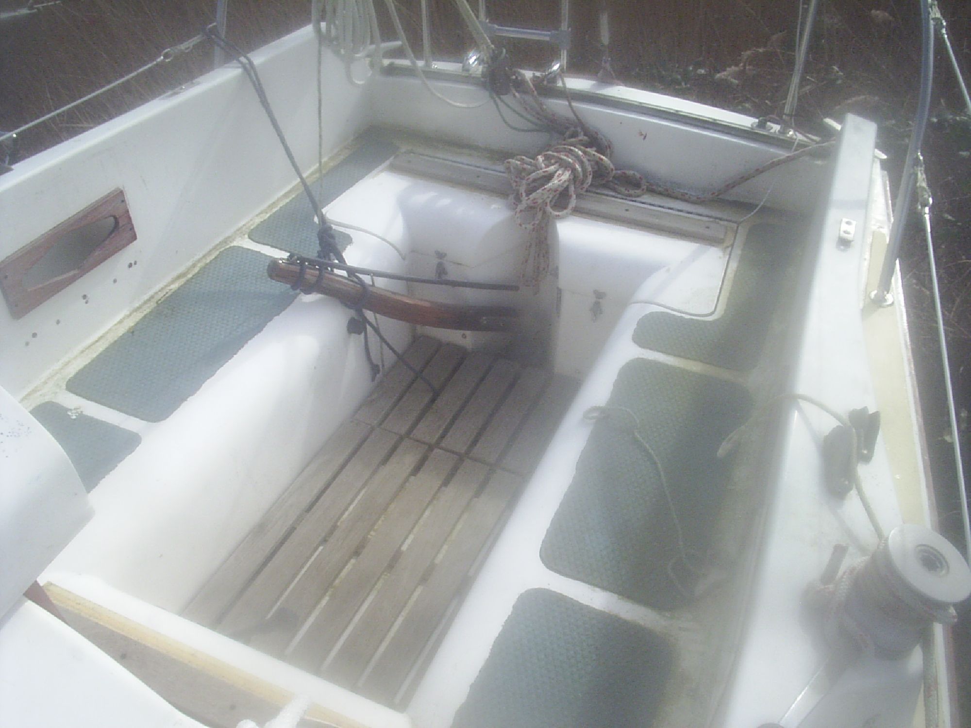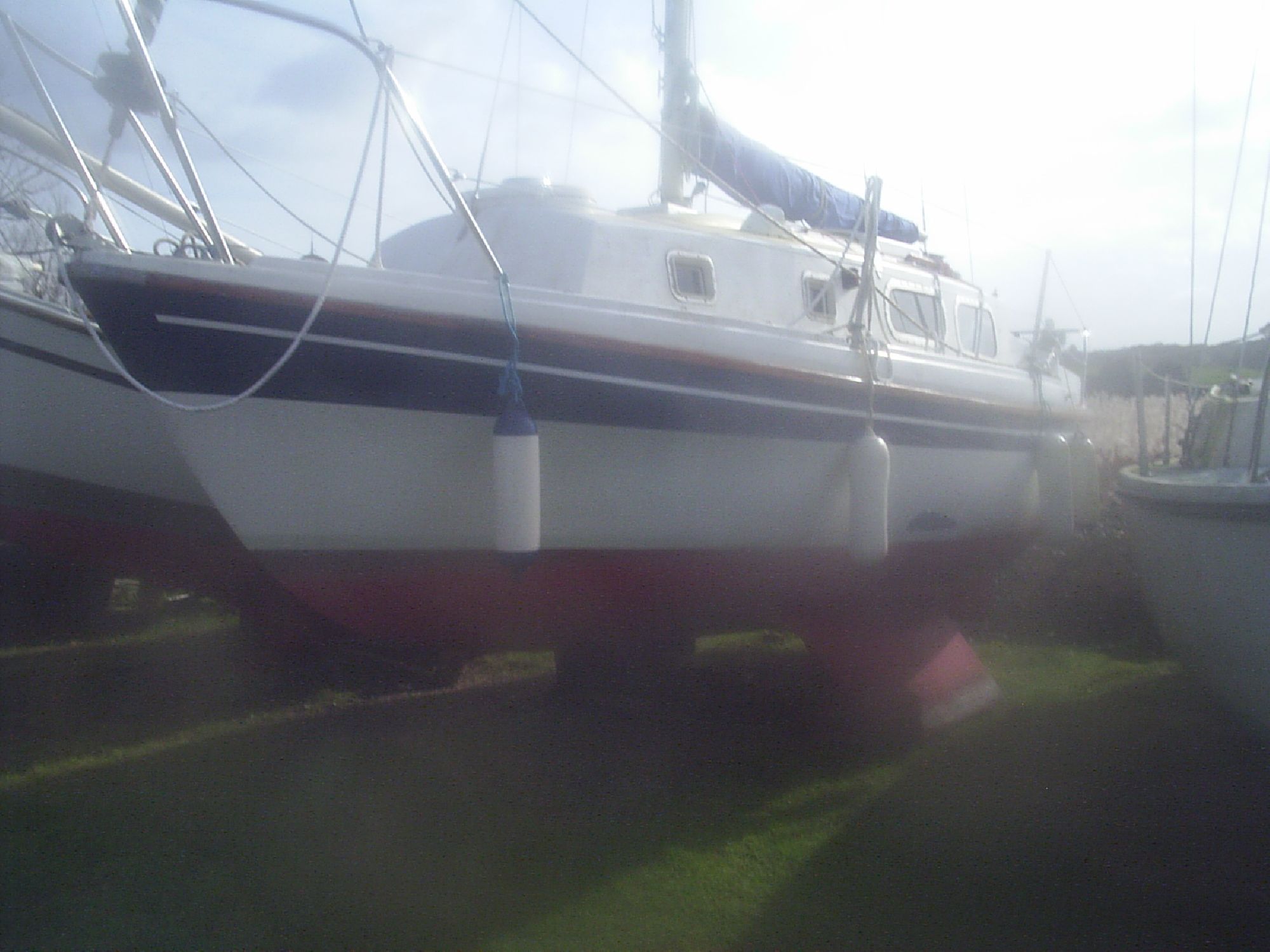This yacht has a spacious saloon area with galley consisting of a 2 burner cooker, sink and good storage cupboards. There is a double berth in the bow and 2 more berths in the main cabin all fully cushioned.The cockpit is roomy and can seat 4 people comfortably and has good sized storage lockers. Stainless steel pullpit/pushpit and safety rails surround the boat with good side walk ways. The engine is electric start with controls at hand in the cockpit. She has recently under gone a paint job and fresh varnish applied. Overall the boat is in good shape and is an ideal yacht for east coast sailing