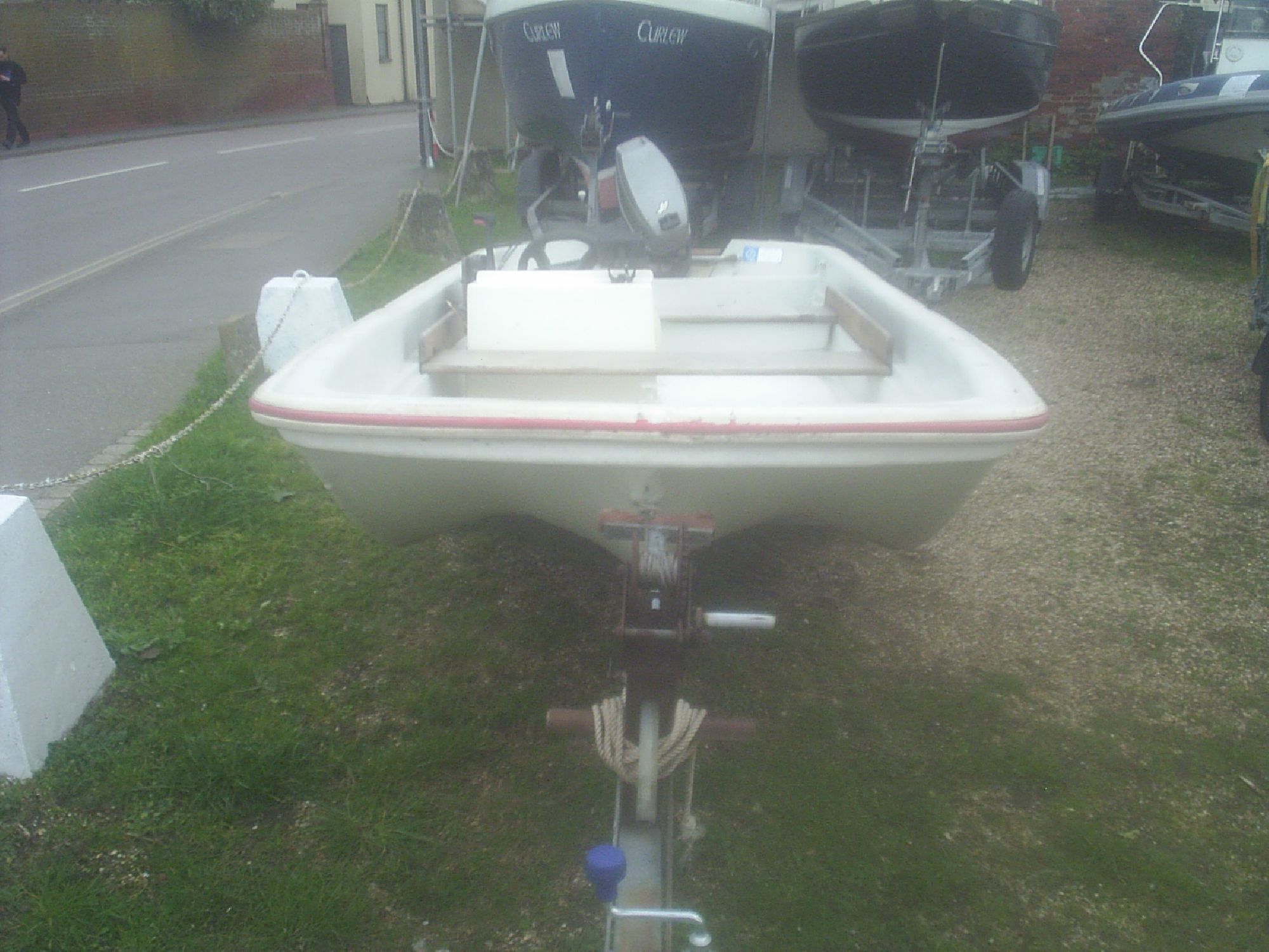Min: 0' 5" Built: 1980'sBy: Dell Quay MarineConstruction: GRP & RubberRig: N/AKeel: Planing Hull Engine: Mariner 25hp 2 StrokeTrailer: Custom Built 2 Wheel Road Trailer