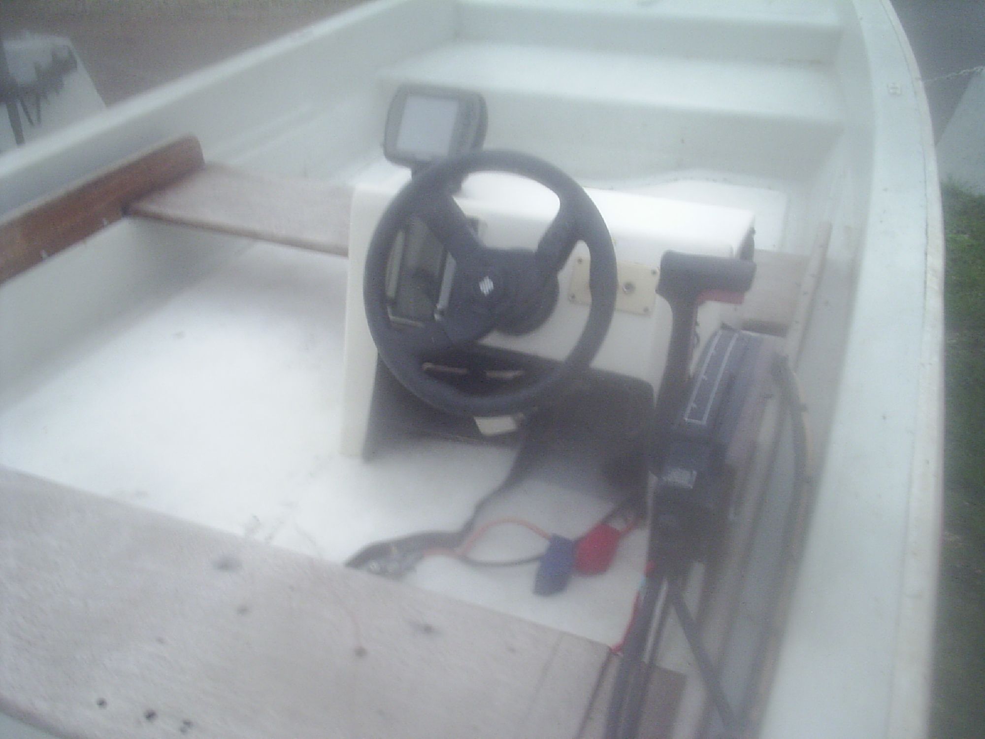 This Dory comes with a console for the helm and controls for the engine including electric start.There is a 12v battery and a plastic fuel tank. These dories are double skinned which makes