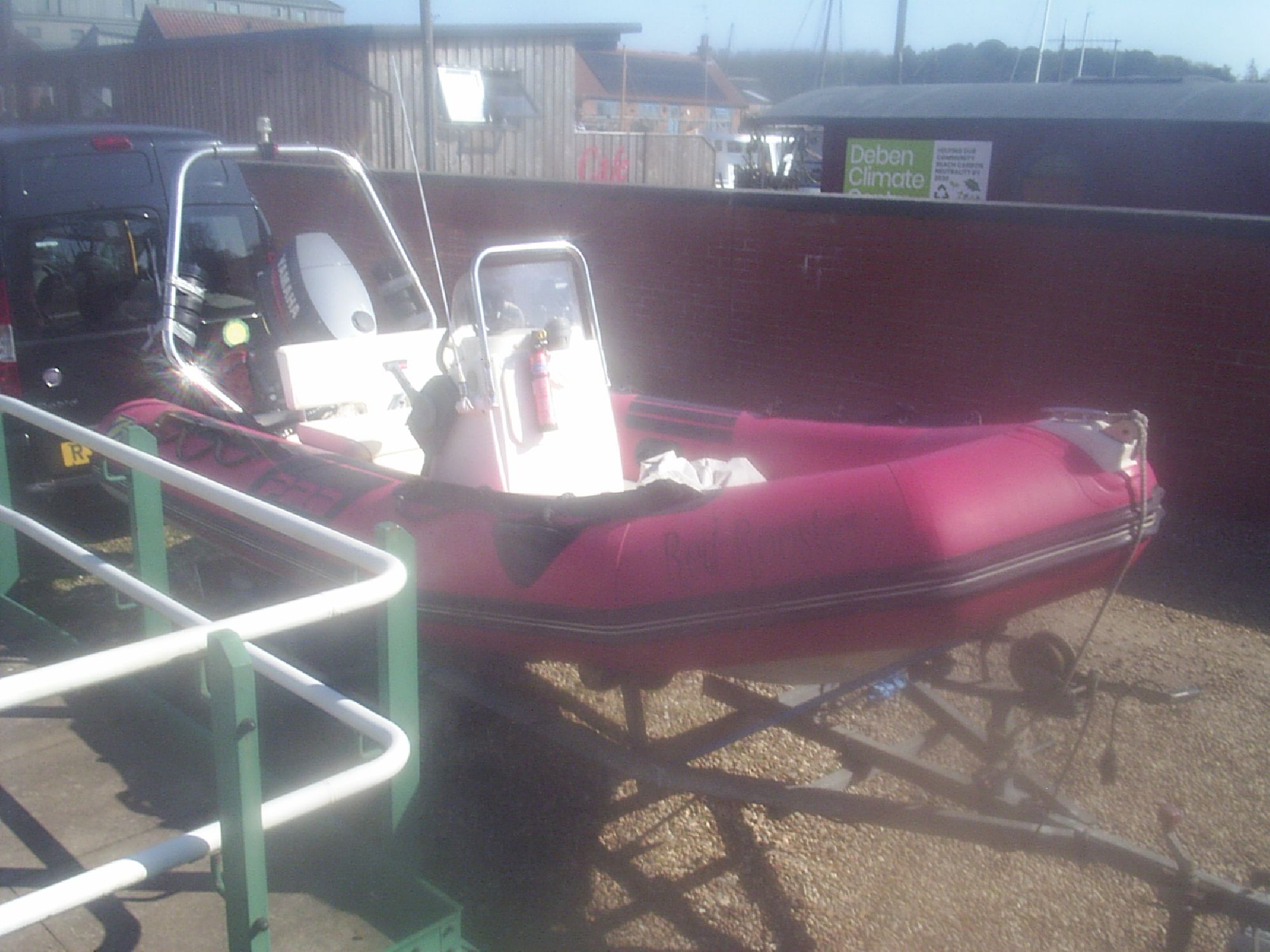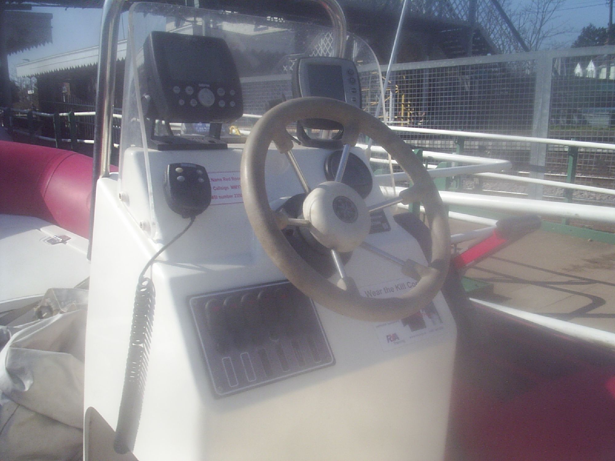 This RIB comes with a centre console with helm and remote controls including electric start and PTT for the outboard. There is cushioned seating, 2 covers,anchor/chain 2 paddles, Garmin GPS, marine VHF and fishfinder. This is a super outfit ready for the water.
