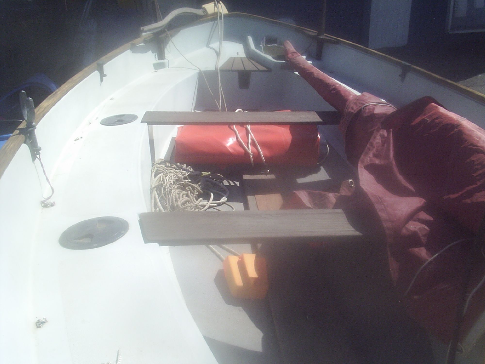 This little boat also comes with a cockpit cover made for her,plenty of seating built within the mould,a small outboard well and other bits and pieces. These are versatile boats ideal for the single handed sailer. Overall she is a good example of her class.